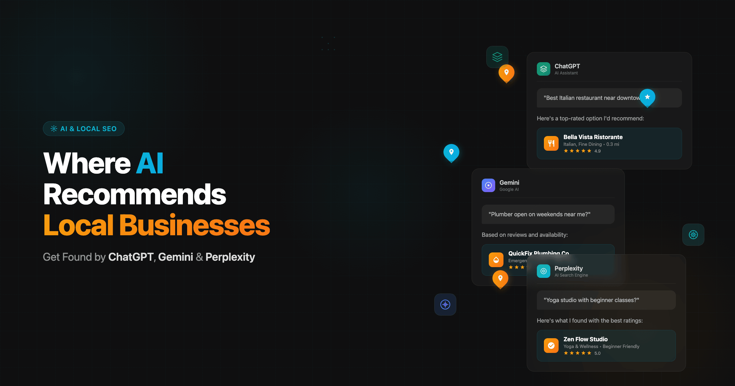 Your next customer might never type your business name into Google. Instead, they’ll ask ChatGPT “What’s the best Italian restaurant near downtown?” or tell Gemini “Find me a reliable plumber in Brooklyn.” And the AI will recommend specific businesses — yours or your competitor’s.