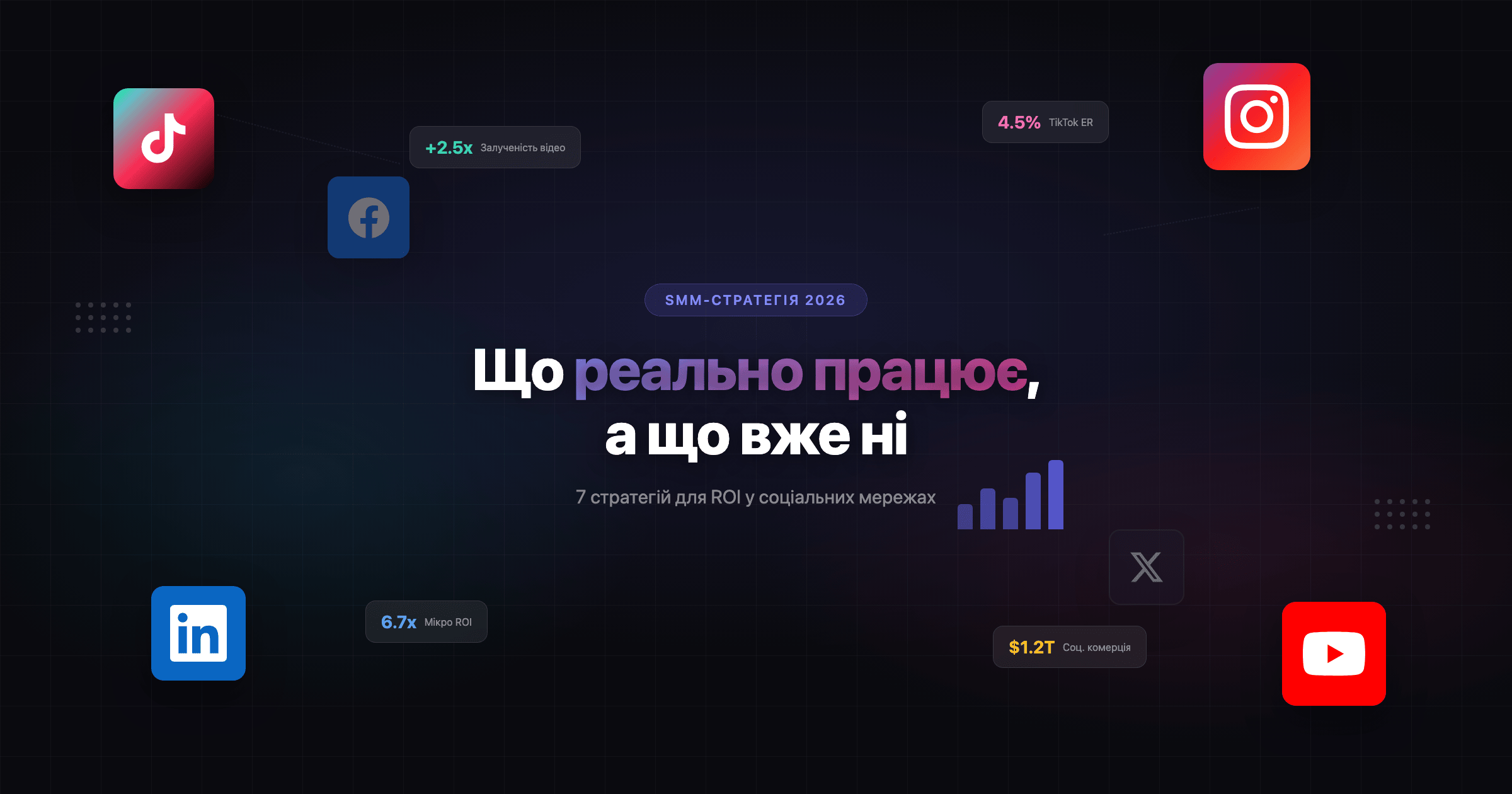 У цій статті — конкретний розбір того, що працює в соціальних мережах у 2026 році: реальні дані, ROI-бенчмарки по кожній платформі та практичні бюджетні рекомендації. Без мотиваційної води — лише стратегії, які дають результат прямо зараз.